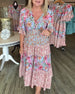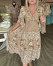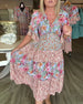 Kjole V-Utringning Lotusserm Blomstret
