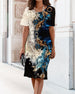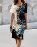 SPESIFIKASJONER Stil: Uformelt Materiale: Bomullsblandinger Kjole type: Rett Kjole Kjolens lengde: Knelengde Halslinje: Rund hals Mønstertype: Trykt Ermetype: Vanlig erme Erme lengde: Kort erme Passform type: Vanlig Årstid: Vår,Sommer Anledning: Daglig Pakken inkluderer: 1 x Kjole STØRRELSESTABELL (cm) Størrelse Bryst Lengde S 97 100 M 1...