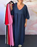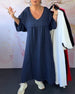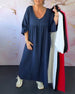 SPESIFIKASJONER Stil: Uformelt Materiale: 100% Bomull Kjole type: A-line Kjolens lengde: Maxi Halslinje: V-hals Mønstertype: Ensfarget Ermetype: Lanterne erme Erme lengde: 3/4 erme Passform type: Vanlig Årstid: Vår,Sommer Anledning: Daglig Pakken inkluderer: 1 x Kjole STØRRELSESTABELL (cm) Størrelsestabell Bryst Lengde Arm Skulder S ...
