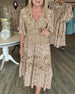 Kjole Langermet Leopardskrift Splitt