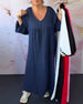 Kjole Temperament V-Hals Kontrastfarge