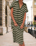 Kjole Stripet Krage Kort Erme