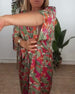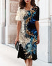 SPESIFIKASJONER Stil: Uformelt Materiale: Bomullsblandinger Kjole type: Rett Kjole Kjolens lengde: Midi Halslinje: V-hals Mønstertype: Trykt Ermetype: Vanlig erme Erme lengde: 3/4 erme Detaljer: Knute Passform type: Vanlig Årstid: Vår,Sommer Anledning: Daglig Pakken inkluderer: 1 x Kjole STØRRELSESTABELL (cm) Størrelse Bryst Lengde S 97...