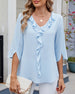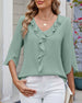 Bluse Halvermet Volanger Ensfarget Avslappet