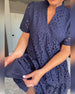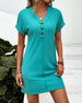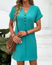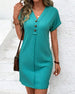 Kjole V-Hals Ensfarget Tre Knapper Kortermet