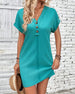 SPESIFIKASJONER Stil: Uformelt Materiale: Bomullsblandinger Kjole type: Rett Kjole Kjolens lengde: Knelengde Halslinje: V-hals Mønstertype: Ensfarget Ermetype: Vanlig erme Erme lengde: Kort erme Detaljer: Lomme,Knapper Passform type: Vanlig Årstid: Vår,Sommer Anledning: Daglig Pakken inkluderer: 1 x Kjole STØRRELSESTABELL (cm) Størrelse Brys...