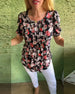Bluse Med Ballongermer Og Blomstermønster