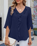 SPESIFIKASJONER Topp type: Bluser Stil: Uformelt Materiale: Bomullsblandinger Anledning: Daglig Halslinje: V-hals Mønstertype: Ensfarget Ermetype: Spalte ermer Erme lengde: Halv erme Passform type: Vanlig Årstid: Vår,Sommer Detaljer: Rufsete Pakken inkluderer: 1 x Bluse STØRRELSESTABELL (cm) Størrelse Bryst Lengde S 100 68 M 105 69 ...