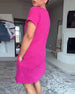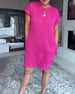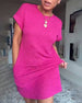 SPESIFIKASJONER Stil: Uformelt Materiale: Bomullsblandinger Kjole type: Rett Kjole Kjolens lengde: Knelengde Halslinje: Rund hals Mønstertype: Ensfarget Erme lengde: Kort erme Detaljer: Lomme Passform type: Vanlig Årstid: Vår,Sommer Anledning: Daglig Pakken inkluderer: 1 x Kjole STØRRELSESTABELL (cm) Størrelse Bryst Lengde S 97 100 M 101...