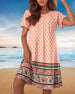 SPESIFIKASJONER Stil: Uformelt Materiale: Bomullsblandinger Kjole type: Rett Kjole Kjolens lengde: Over kneet Halslinje: V-hals Mønstertype: Trykt Ermetype: Vanlig erme Erme lengde: Kort erme Detaljer: Lomme Passform type: Vanlig Årstid: Vår,Sommer Anledning: Daglig Pakken inkluderer: 1 x Kjole STØRRELSESTABELL (cm) Størrelse Bryst Lengd...