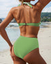 SPESIFIKASJONER Stil: Ferie Materiale: 15% Spandex,85% Polyester Anledning: Ferie Mønstertype: Fargeblokk Erme lengde: Ermeløs Topp type: Bikini BH type: Bøyle-fri BH Truse type: Høyt snitt Passform type: Vanlig Årstid: Vår,Sommer Detaljer: Ryggløs,Snøre opp Pakken inkluderer: 1 x Bikini STØRRELSESTABELL (cm) Størrelse Bryst Midje Hofte Unde...