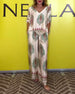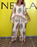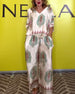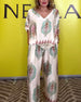 SPESIFIKASJONER Stil: Uformelt Topp type: Bluser Kategori: Sett Materiale: Bomullsblandinger Mønstertype: Trykt Halslinje: V-hals Ermetype: Vanlig erme Erme lengde: 3/4 erme Bukse type: Bredt ben Bukselengde: Lang Midje type: Midt i midjen Passform type: Vanlig Årstid: Vår,Sommer Detaljer: Lomme,Ryggløs Anledning: Daglig Pakken inkluderer: 1 x...