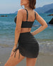 SPESIFIKASJONER Stil: Ferie Materiale: 82% Chinlon,18% Spandex Anledning: Ferie Halslinje: V-hals Mønstertype: Ensfarget Erme lengde: Ermeløs Topp type: Bikini BH type: Triangel Truse type: Skjørt Passform type: Skinny Detaljer: Ryggløs,Snøre opp,Rynket,Snøring Pakken inkluderer: 1 x Bikini STØRRELSESTABELL (cm) Størrelse Bryst Midje Hofte U...