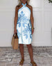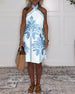 SPESIFIKASJONER Stil: Uformelt Materiale: Bomullsblandinger Kjole type: Rett Kjole Kjolens lengde: Knelengde Halslinje: Halter Mønstertype: Trykt Erme lengde: Ermeløs Detaljer: Ryggløs,Snøre opp Passform type: Vanlig Årstid: Vår,Sommer Anledning: Daglig Pakken inkluderer: 1 x Kjole STØRRELSESTABELL (cm) Størrelse Bryst Lengde S 97 100 M ...