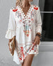 Kjole V-hals Kniplingsting Avslappet Allsidig Trykt