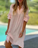 SPESIFIKASJONER Stil: Uformelt Materiale: Bomullsblandinger Kjole type: Rett Kjole Kjolens lengde: Knelengde Halslinje: Slag Mønstertype: Ensfarget Ermetype: Vanlig erme Erme lengde: Kort erme Detaljer: Rynket Passform type: Vanlig Årstid: Vår,Sommer Anledning: Daglig Pakken inkluderer: 1 x Kjole STØRRELSESTABELL (cm) Størrelse Bryst Lengde ...