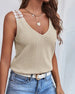 SPESIFIKASJONER Topp type: Tank Topp Stil: Uformelt Materiale: Polyester Anledning: Daglig Halslinje: V-hals Mønstertype: Ensfarget Ermetype: Vanlig erme Erme lengde: Ermeløs Passform type: Vanlig Årstid: Vår,Sommer Detaljer: Lappeverk,Blonder Pakken inkluderer: 1 x Tank-topp STØRRELSESTABELL (cm) Størrelse Bryst Lengde S 96 67 M 10...
