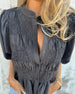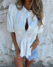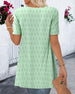 SPESIFIKASJONER Stil: Uformelt Materiale: Bomullsblandinger Kjole type: Tunika Kjolens lengde: Knelengde Halslinje: V-hals,Slag Mønstertype: Ensfarget Erme lengde: Kort erme Detaljer: Rynket Passform type: Vanlig Årstid: Vår,Sommer Anledning: Daglig Pakken inkluderer: 1 x Kjole STØRRELSESTABELL (cm) Størrelse Bryst Lengde S 97 100 M 101 ...