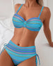SPESIFIKASJONER Stil: Ferie Materiale: 15% Spandex,85% Polyester Anledning: Ferie Mønstertype: Stripete,Trykt Erme lengde: Ermeløs Topp type: Bikini BH type: Triangel Truse type: Høyt snitt Passform type: Skinny Detaljer: Ryggløs,Snøre opp Pakken inkluderer: 1 x Bikini STØRRELSESTABELL (cm) Størrelse Bryst Midje Hofte Under byste S 88 73 9...