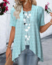 SPESIFIKASJONER Topp type: Bluser Stil: Uformelt Materiale: Bomullsblandinger Anledning: Daglig Halslinje: Rund hals Mønstertype: Trykt Ermetype: Vanlig erme Erme lengde: Kort erme Passform type: Vanlig Årstid: Vår,Sommer Detaljer: Uthult,To falske stykker Pakken inkluderer: 1 x Bluse STØRRELSESTABELL (cm) Størrelse Bryst Lengde S 97 65 ...