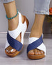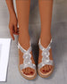 SPESIFIKASJONER Stil: Uformelt Tå type: Åpen tå Sko type: Flate sandaler Hæltype: Kilehæl Øvre materialer: Pu Yttersåle materialer: Pu Fôrmaterialer: Pu Hælhøyde type: 4 cm Mønstertype: Fargeblokk Årstid: Vår,Sommer Anledning: Daglig Pakken inkluderer: 1 x Sandal STØRRELSESTABELL (cm) Størrelse Lengde 35 22.5 36 23 37 23.5 38 24 ...