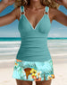 SPESIFIKASJONER Stil: Ferie Materiale: 15% Spandex,85% Polyester Anledning: Ferie Halslinje: V-hals Mønstertype: Trykt Erme lengde: Ermeløs Topp type: Tankini BH type: Bøyle-fri BH Truse type: Skjørt Passform type: Vanlig Årstid: Vår,Sommer Pakken inkluderer: 1 x Tankini STØRRELSESTABELL (cm) Størrelse Bryst Midje Hofte Under byste S 88 73...