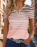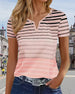 SPESIFIKASJONER Topp type: T skjorte Stil: Uformelt Materiale: Bomullsblandinger Anledning: Daglig Halslinje: V-hals Mønstertype: Stripete Ermetype: Vanlig erme Erme lengde: Kort erme Passform type: Vanlig Årstid: Vår,Sommer Pakken inkluderer: 1 x T-skjorte STØRRELSESTABELL (cm) Størrelse Bryst Lengde S 97 68 M 101 69.5 L 105 71 XL 1...