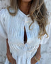 SPESIFIKASJONER Topp type: Bluser Stil: Uformelt Materiale: Bomullsblandinger Anledning: Daglig Halslinje: Krage Mønstertype: Ensfarget Ermetype: Vanlig erme Erme lengde: Halv erme Passform type: Vanlig Årstid: Vår,Sommer Detaljer: Rynket Pakken inkluderer: 1 x Bluse STØRRELSESTABELL (cm) Størrelse Bryst Lengde S 104 58 M 109 59 L...