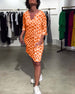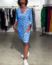 SPESIFIKASJONER Stil: Uformelt Materiale: Bomullsblandinger Kjole type: Rett Kjole Kjolens lengde: Midi Halslinje: V-hals Mønstertype: Trykt Ermetype: Vanlig erme Erme lengde: Kort erme Detaljer: Lomme Passform type: Vanlig Årstid: Vår,Sommer Anledning: Daglig Pakken inkluderer: 1 x Kjole STØRRELSESTABELL (cm) Størrelse Bryst Lengde S 97 1...