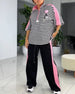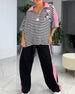 SPESIFIKASJONER Stil: Uformelt Topp type: Bluser Kategori: Sett Materiale: Bomullsblandinger Mønstertype: Stripete,Trykt Halslinje: Slag Ermetype: Vanlig erme Erme lengde: Halv erme Bukselengde: Lang Midje type: Høyt liv Passform type: Vanlig Årstid: Vår,Sommer Detaljer: Lomme,Glidelås Anledning: Daglig Pakken inkluderer: 1 x Bluse, 1 x Bukser...