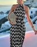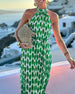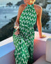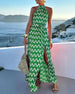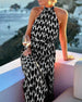 SPESIFIKASJONER Stil: Ferie Materiale: Bomullsblandinger Kjole type: A-line Kjolens lengde: Maxi Halslinje: Halter Mønstertype: Trykt Erme lengde: Ermeløs Detaljer: Snøre opp Passform type: Vanlig Årstid: Sommer Anledning: Daglig Pakken inkluderer: 1 x Kjole STØRRELSESTABELL (cm) Størrelse Bryst Lengde S 95 130 M 100 131 L 105 132 XL...