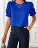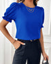 SPESIFIKASJONER Topp type: Bluser Stil: Uformelt Materiale: Bomullsblandinger Anledning: Daglig Halslinje: Rund hals Mønstertype: Ensfarget Ermetype: Lanterne erme Erme lengde: Kort erme Passform type: Vanlig Årstid: Vår,Sommer Pakken inkluderer: 1 x Bluse STØRRELSESTABELL (cm) Størrelse Bryst Lengde Arm Skulder S 94 60 27 35 M 99 61 ...