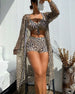 SPESIFIKASJONER Stil: Sexy Materiale: 15% Spandex,85% Polyester Anledning: Ferie Mønstertype: Geometrisk trykk,Trykt Ermetype: Vanlig erme Erme lengde: Langermet Topp type: Bikini,Over-klær BH type: Bøyle-fri BH Truse type: Høyt liv Passform type: Vanlig Detaljer: Snøre opp Pakken inkluderer: 1 x Bikini,1 x Strandklær STØRRELSESTABELL (cm) S...