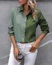 Bluse Med Enkeltknapp Og Fargeblokk Krage