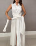 SPESIFIKASJONER Stil: Uformelt Materiale: Bomullsblandinger Kjole type: Skjorte Kjolens lengde: Maxi Halslinje: Slag Mønstertype: Ensfarget Erme lengde: Ermeløs Detaljer: Spenne,Kryssstropper Passform type: Vanlig Årstid: Vår,Sommer Anledning: Daglig Pakken inkluderer: 1 x Kjole STØRRELSESTABELL (cm) Størrelse Bryst Lengde S 95 130 M 100...