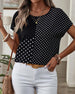 SPESIFIKASJONER Topp type: Topper Stil: Uformelt Materiale: Bomullsblandinger Anledning: Daglig Halslinje: V-hals Mønstertype: Trykt Ermetype: Vanlig erme Erme lengde: Kort erme Passform type: Vanlig Årstid: Sommer Detaljer: Knapper Pakken inkluderer: 1 x Topp STØRRELSESTABELL (cm) Størrelse Bryst Lengde S 97 65 M 101 66.5 L 105 68 X...