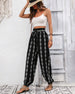 SPESIFIKASJONER Stil: Uformelt Materiale: Bomullsblandinger Mønstertype: Trykt Bukse type: Lanterne Bukselengde: Lang Midje type: Høyt liv Passform type: Vanlig Årstid: Vår,Sommer Detaljer: Snøre opp Anledning: Daglig Pakken inkluderer: 1 x Bukser STØRRELSESTABELL (cm) Størrelse Midje Hofte Lengde S 65-98 118 107 M 69-102 122 108 ...