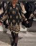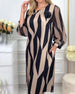 SPESIFIKASJONER Stil: Uformelt Materiale: Bomullsblandinger Kjole type: Rett Kjole Kjolens lengde: Maxi Halslinje: V-hals Mønstertype: Trykt Ermetype: Vanlig erme Erme lengde: Langermet Passform type: Løs Årstid: Høst,Vinter Anledning: Daglig Pakken inkluderer: 1 x Kjole STØRRELSESTABELL (cm) Størrelse Bryst Lengde S 102 132 M 107 133 ...