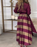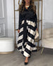 SPESIFIKASJONER Stil: Elegant Materiale: 100% Polyester Kjole type: A-line Kjolens lengde: Maxi Halslinje: Slag Mønstertype: Stripete Ermetype: Vanlig erme Erme lengde: Langermet Detaljer: Bandasje,Knapper Passform type: Vanlig Årstid: Vår,Høst Anledning: Daglig Pakken inkluderer: 1 x Kjole STØRRELSESTABELL (cm) Størrelse Bryst Len...
