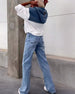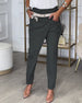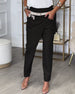 Fasjonable ensfargede bukser med lomme og uregelmessig patchwork