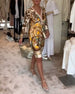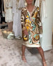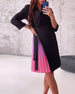 Uformell kjole med fargeblokktrykk med jakkeslag og snøring