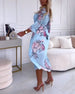 SPESIFIKASJONER Stil: Elegant Materiale: A: 100% Polyester; B: 97% Polyester, 3% Spandex Kjole type: A-line Kjolens lengde: Midi Halslinje: V-hals Mønstertype: Blomstret Ermetype: Volanger erme Erme lengde: 3/4 erme Detaljer: Lappeverk,Rynket Passform type: Vanlig Årstid: Vår Anledning: Daglig Pakken inkluderer: 1 x Kjole STØRRELSESTABELL ...