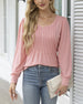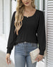 Uformell ensfarget langermet skjorte med V-hals og knapper