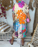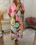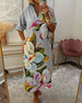 Uformell maxi-kjole med slits med blomstertrykk og lange ermer