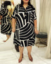 Ermeløs, elegant kjole med geometrisk trykk med rund hals