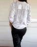 Ensfarget bluse med plisserte ermer med blonder og blonder