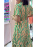 SPESIFIKASJONER Stil: Uformelt Materiale: Bomullsblandinger Kjole type: A-line Kjolens lengde: Midi Halslinje: V-hals Mønstertype: Trykt Ermetype: Vanlig erme Erme lengde: Kort erme Detaljer: Rynket Passform type: Vanlig Årstid: Sommer Anledning: Daglig Pakken inkluderer: 1 x Kjole STØRRELSESTABELL (cm) Størrelse Bryst Lengde S 95 110 M ...