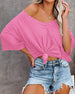 T-Skjorte V-Utringning Rullet Kant Korteermet Løs