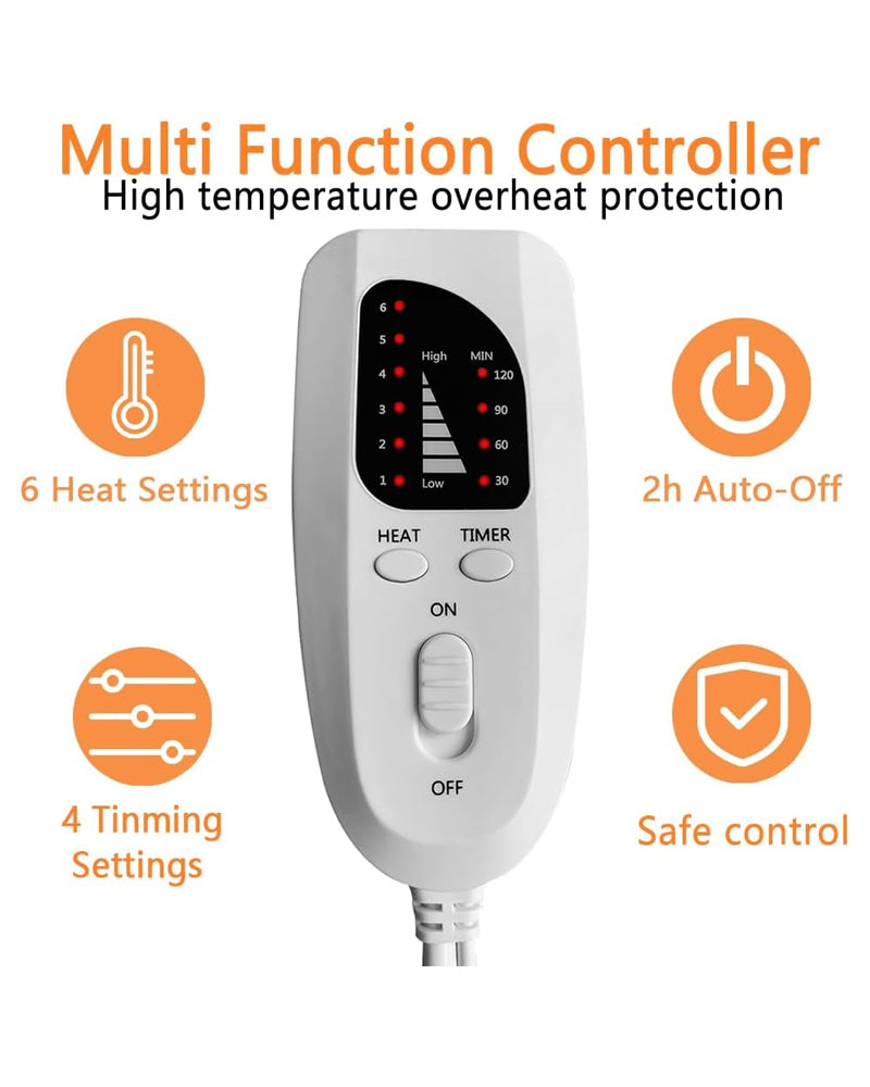 【Maskinvaskebar & Merknad】: Den vektede varmeputen er laget av høykvalitets flanellmateriale, ultramykt og hudvennlig. Den vektede varmeputen er maskinvaskebar og kan vaskes for hånd. Vennligst fjern kontrolleren og la den avkjøles før vask. Lett å rengjøre og vedlikeholde. (Tips: Fjern alltid kontrolleren og la den avkjøles før vask; vask under 38°C, ikke tørketumbling!)