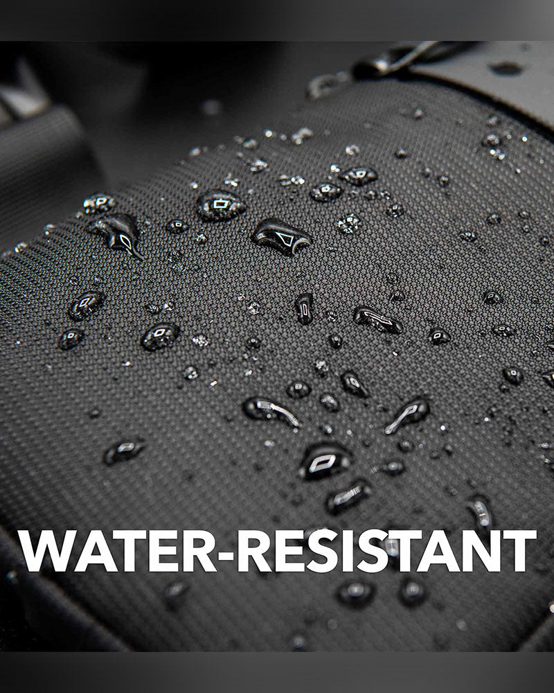Den er værbestandig og laget vanntette materialer så eiendelene dine vil være trygge fra utilsiktede drikkekasuser eller kraftig regn.